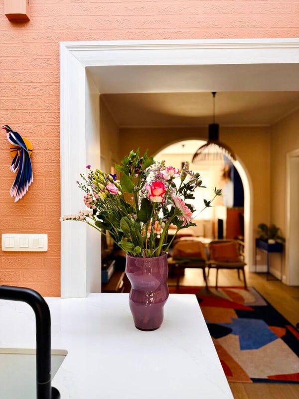 Staat ook prachtig met een vers boeket in lila/roze tinten.