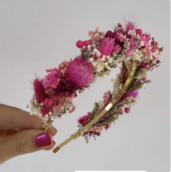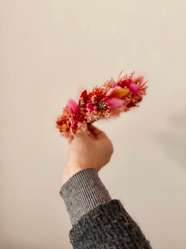 Een bloemendiadeem die mooi op het hoofd blijft zitten en in de kleurtjes van je outfit.