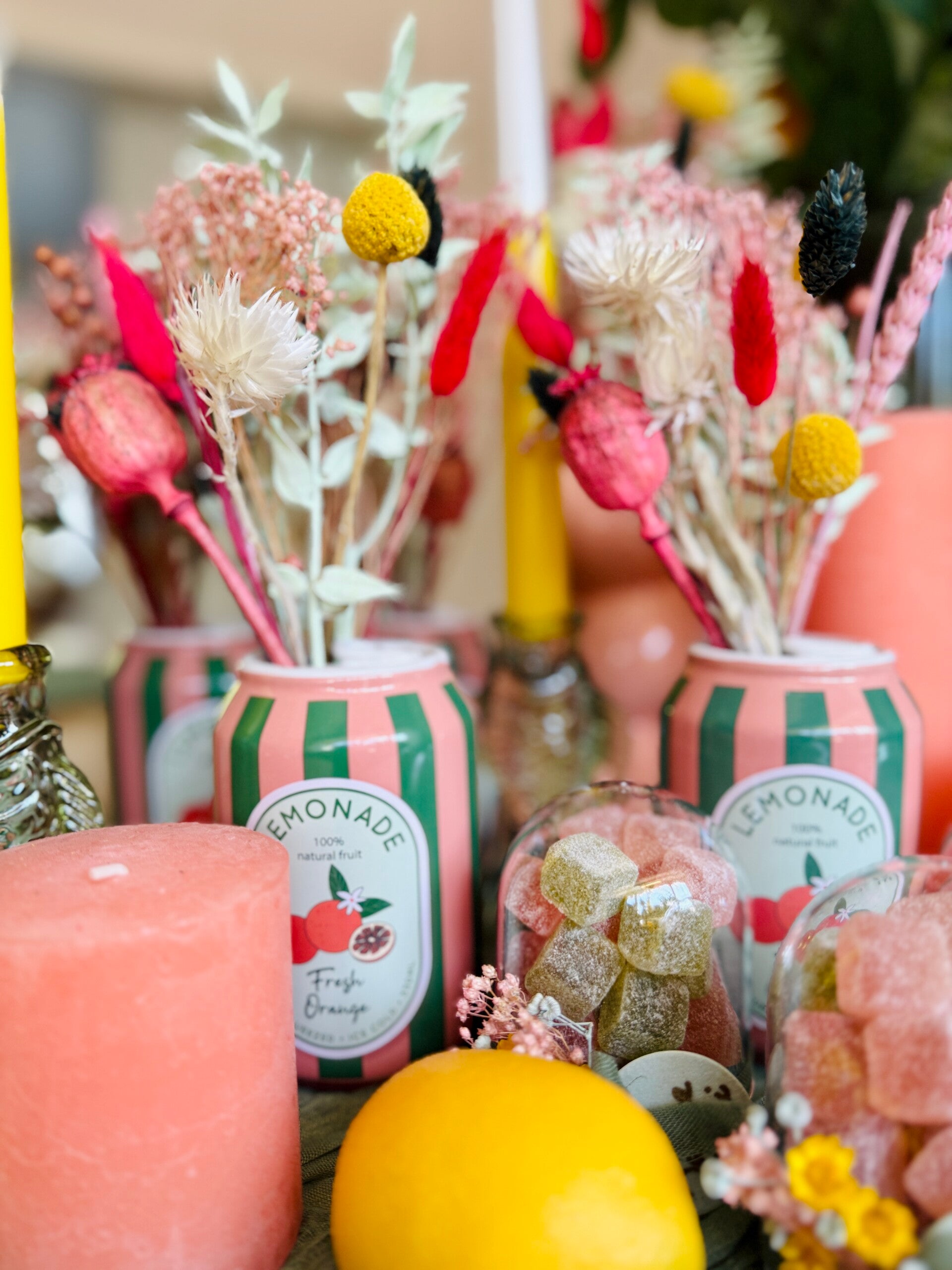 Je kan ze vullen met een boejetje droogbloemen of gebruiken als pennenhouder.