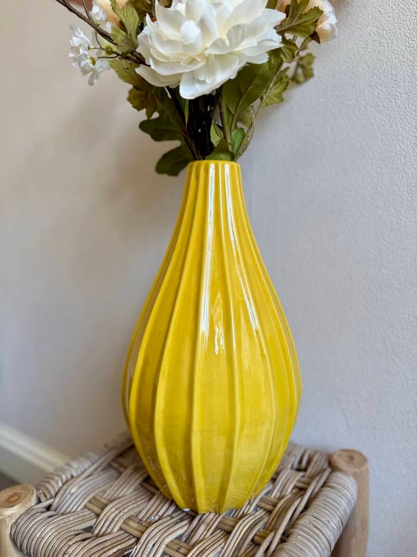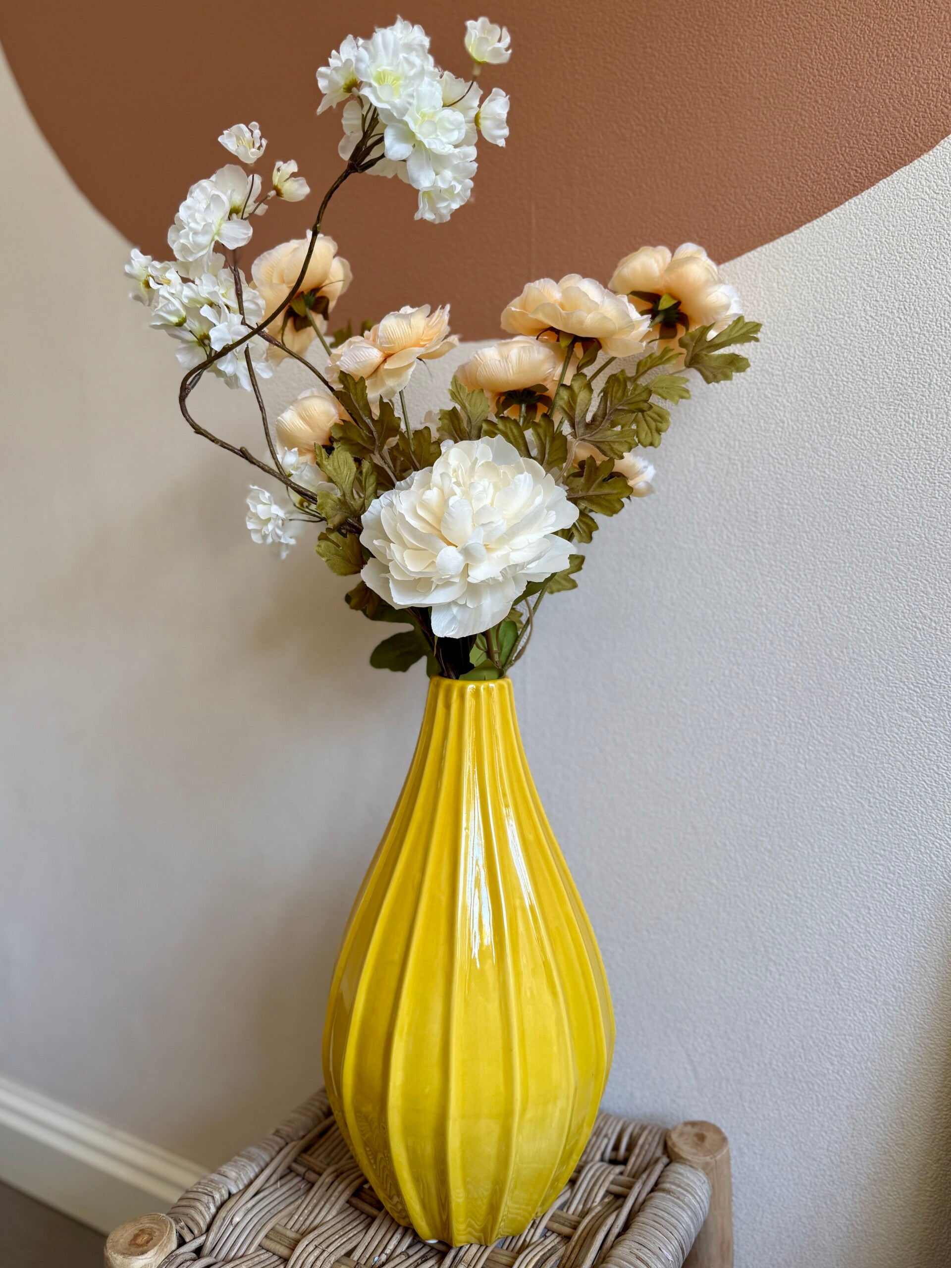 Deze grote vaas is een echte eyecatcher op zichzelf. Hij is nog mooier met enkele kunsttakken of met een large droogboeket.