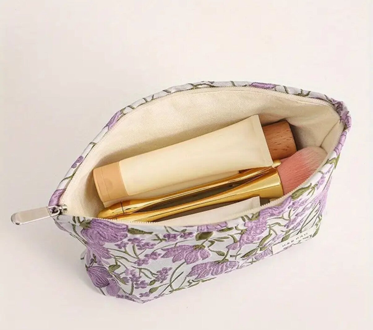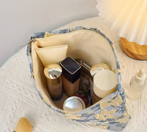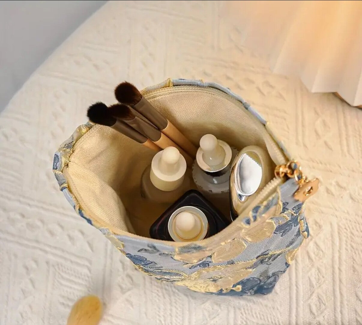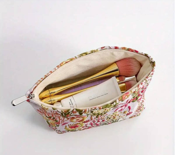 Luxueuze toilettas met rits bovenaan en gevoerd. Ideale opbergtas voor op reis om jullie make-up of andere cosmetica in op te bergen.