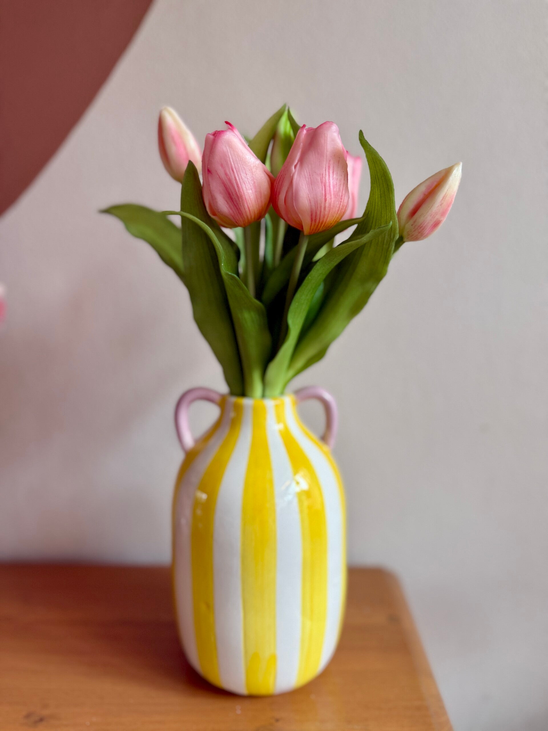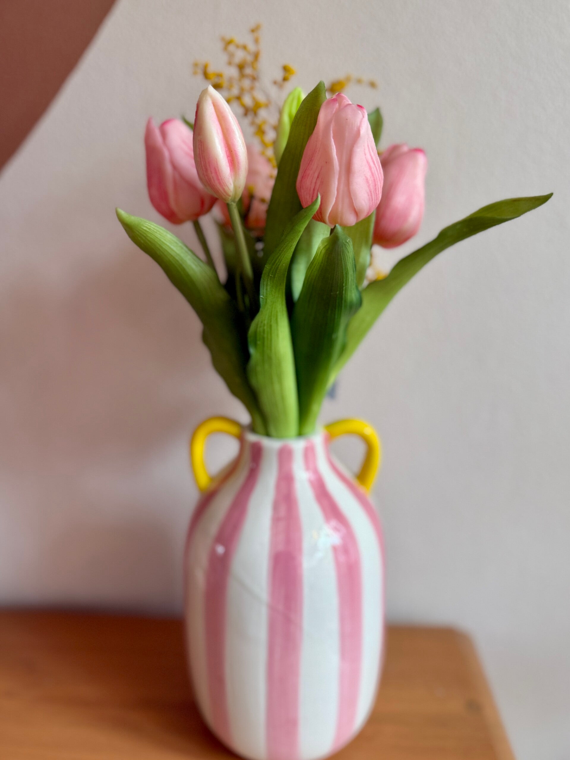 Deze modieuze vaas met strepen geeft een frisse toets aan je interieur! Beschikbaar in 2 kleuren. Formaat : 21 cm x 11 cm