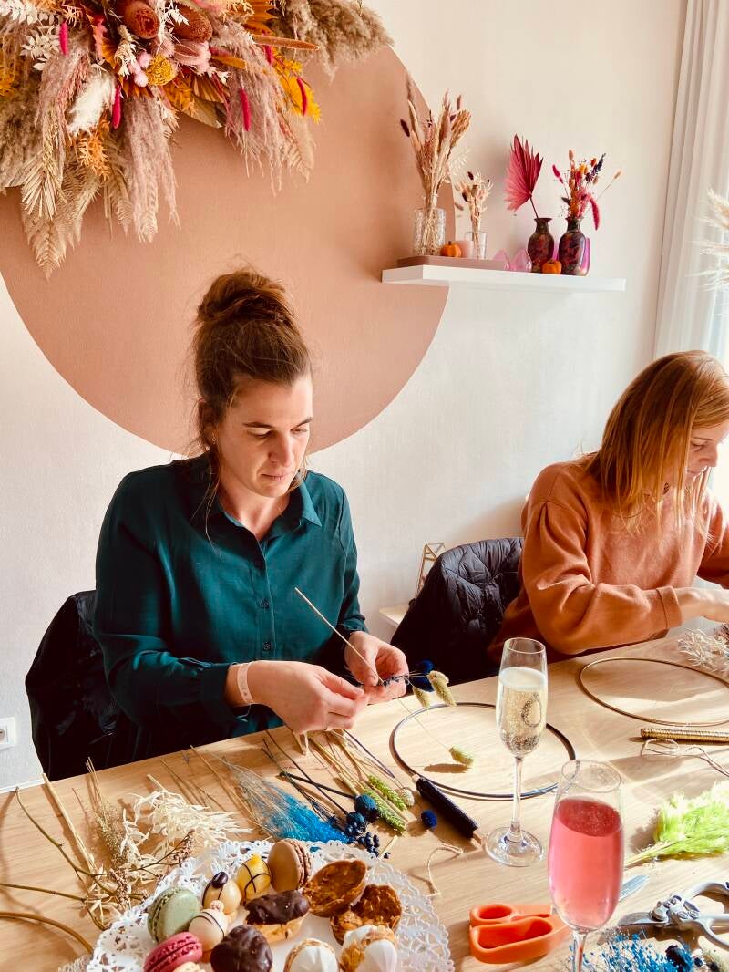 Prijs: € 65/pp inclusief flower hoop en droogbloemen, hapje en drankje.